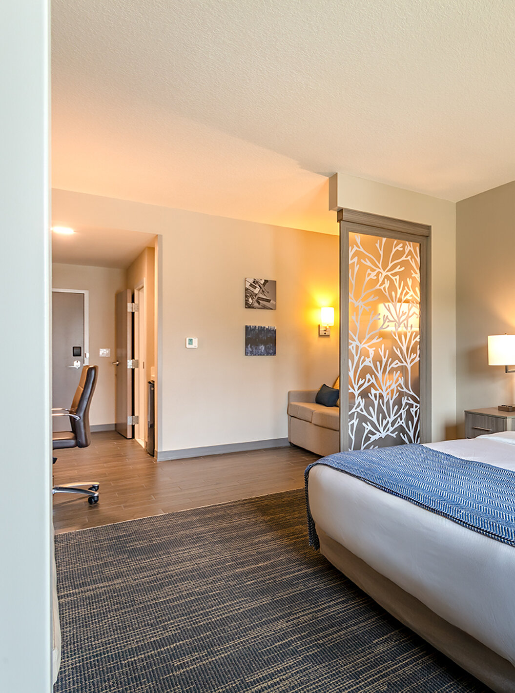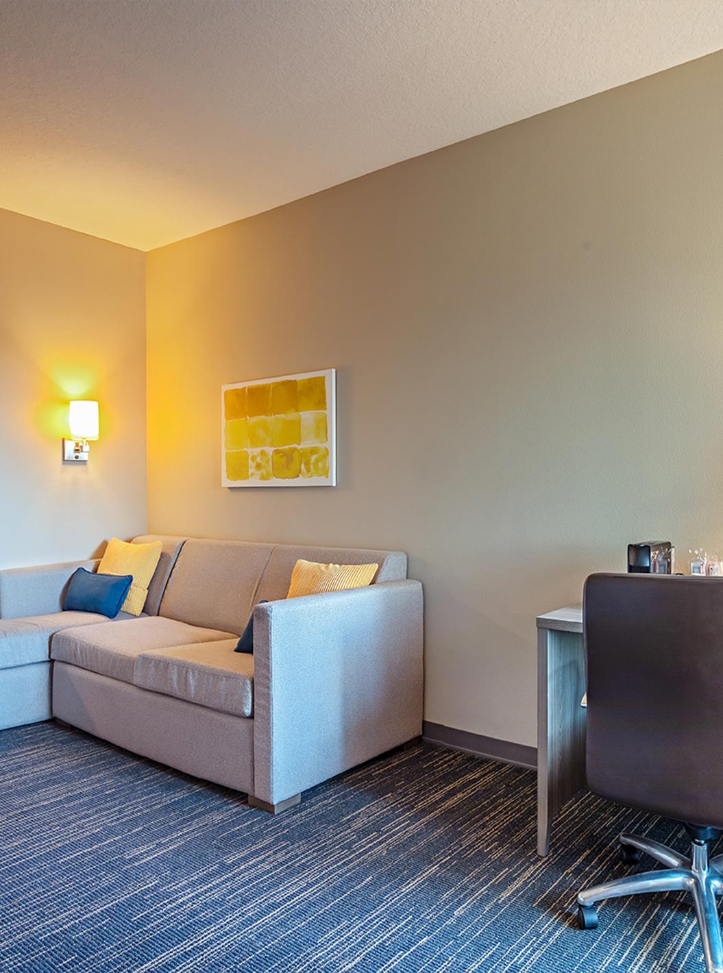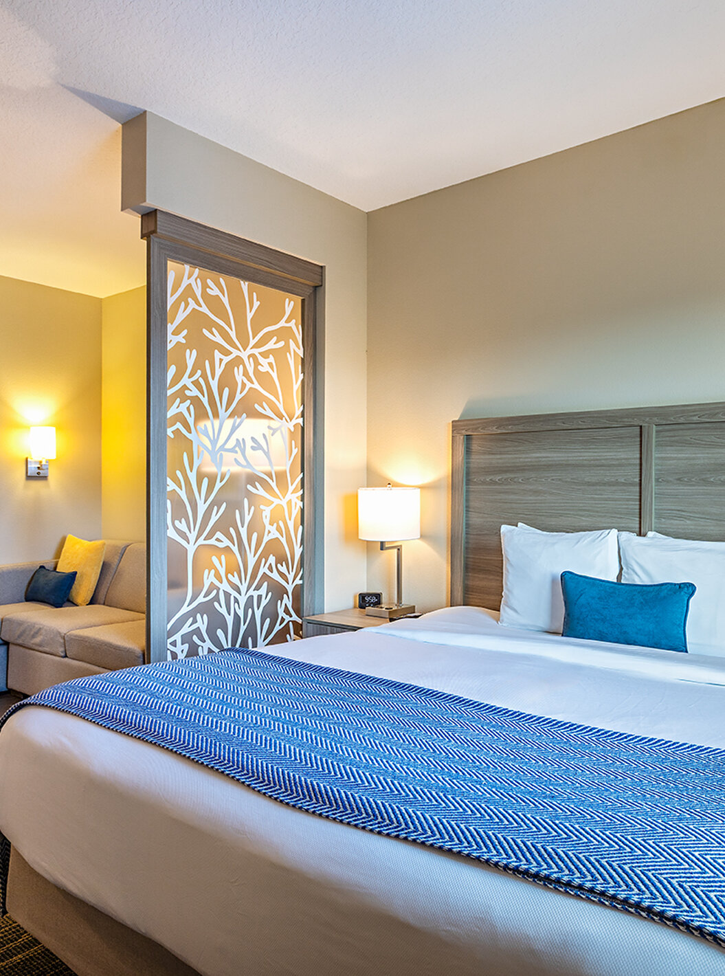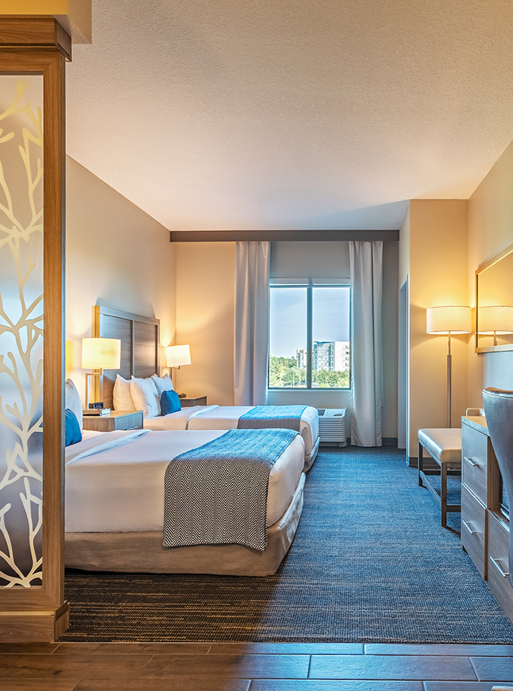 Descubra los espacios amplios y luminosos, incluyendo salas de estar, dormitorio, almacenamiento y escritorio. Suites equipadas con dos camas queen size o una cómoda cama de matrimonio king size.