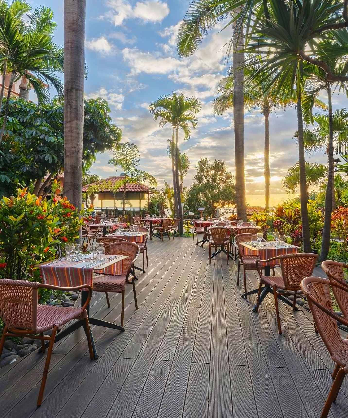 Nuestros restaurantes, con su ambiente elegante, romántico y acogedor, disponen de espacios exteriores que le ofrecen una perspectiva única de nuestros jardines desde dónde disfrutar de su desayuno, almuerzo y cena.