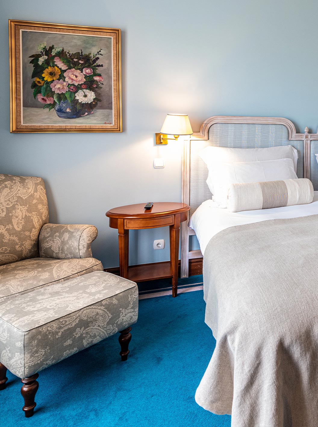 As quatro suites reais, situadas no palácio correspondem aos antigos quartos dos marqueses. Uma vista deslumbrante sobre o rio ou sobre os jardins palacianos são parte de uma experiência única.