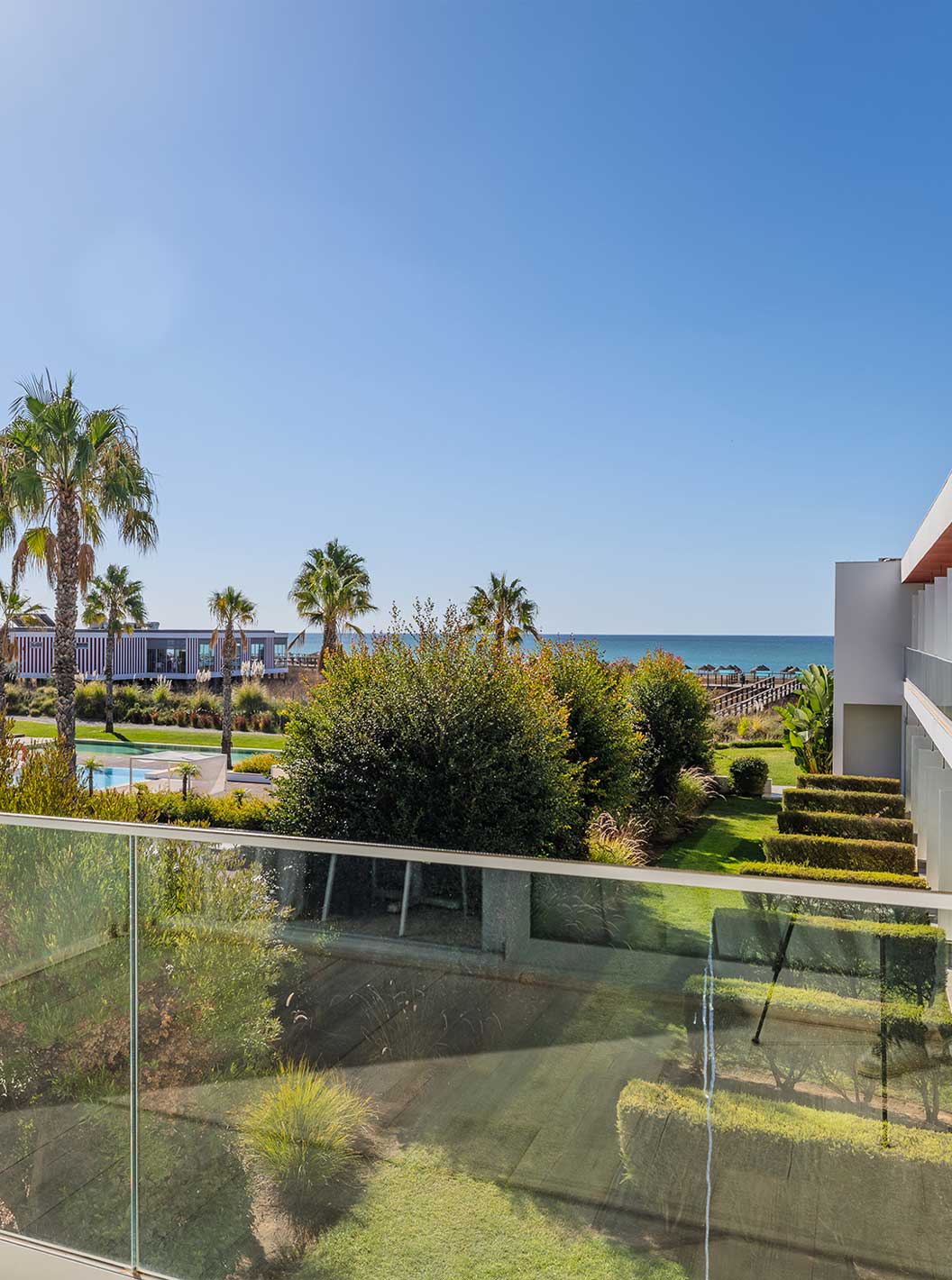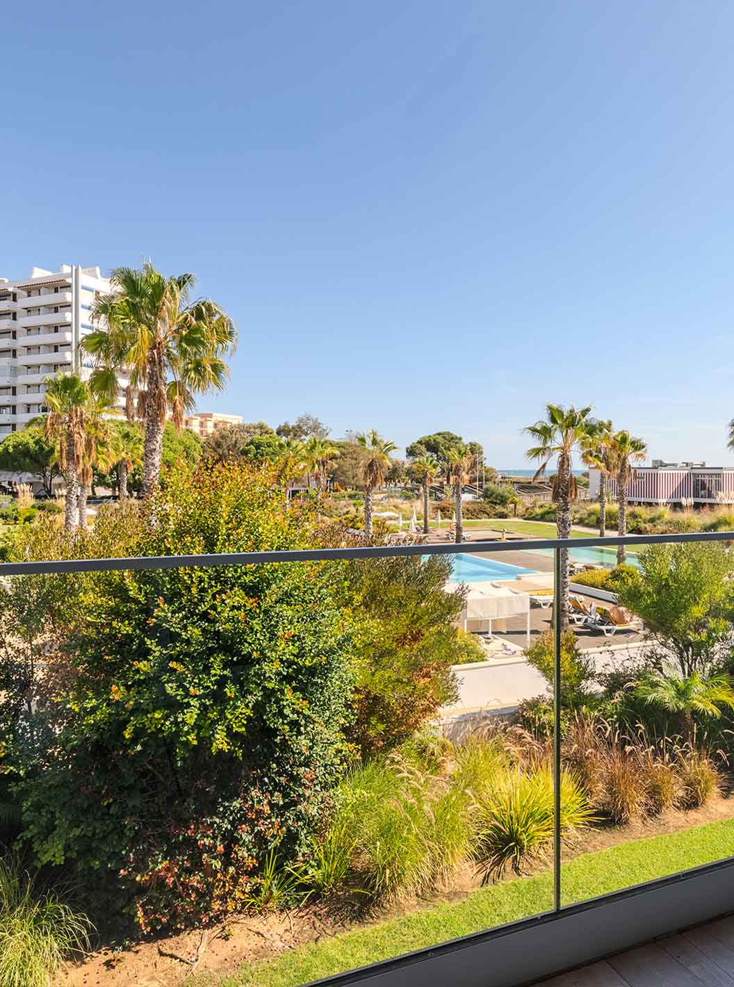 Outdoor area of the pools and sun loungers at Pestana Alvor South Beach, with direct access to the beach
