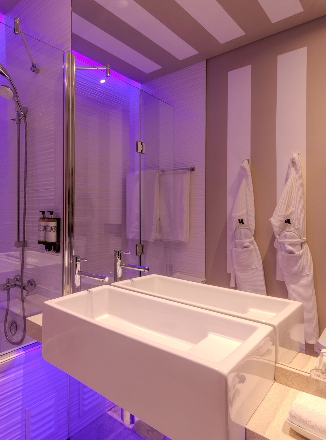 The Deluxe - Exclusive Website of Pestana Alvor South Beach has a bathroom with shower and a sink