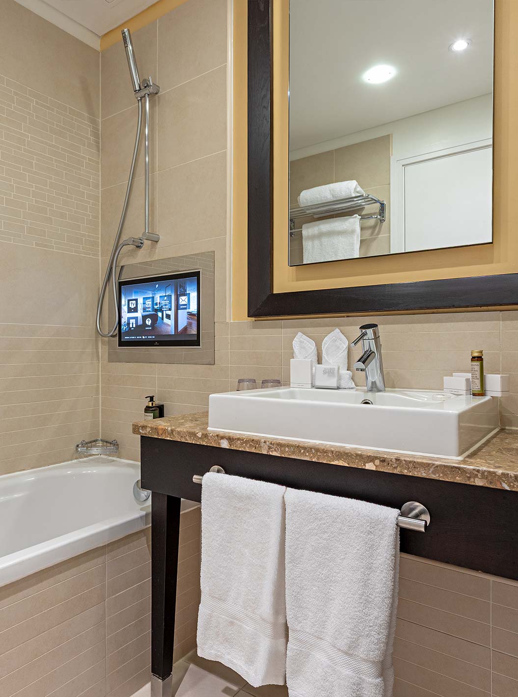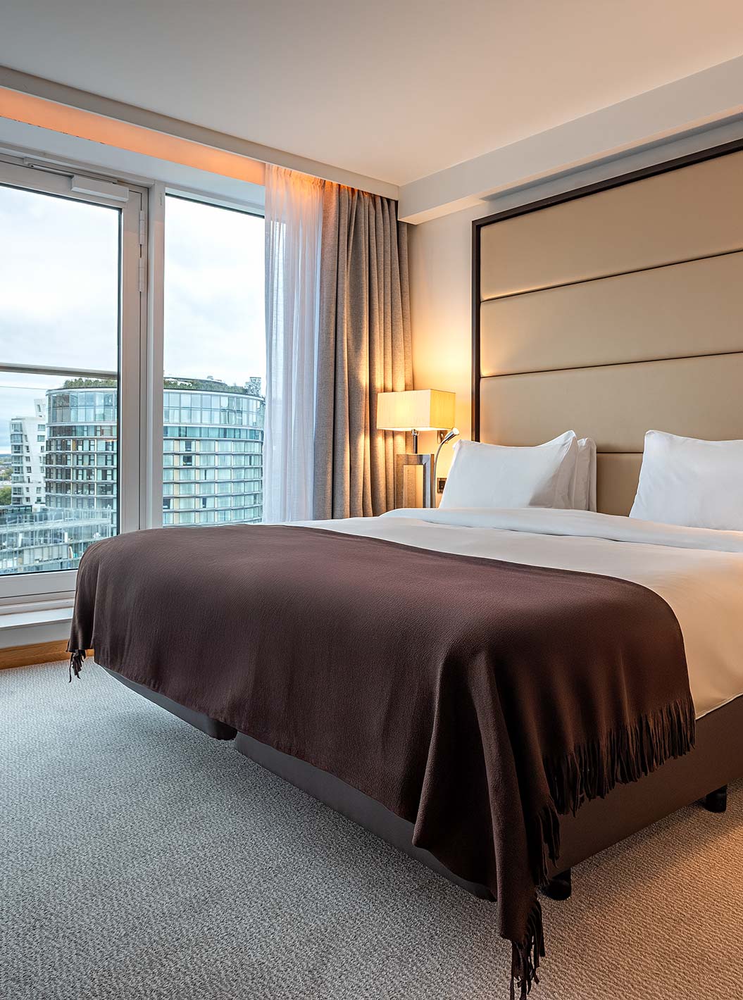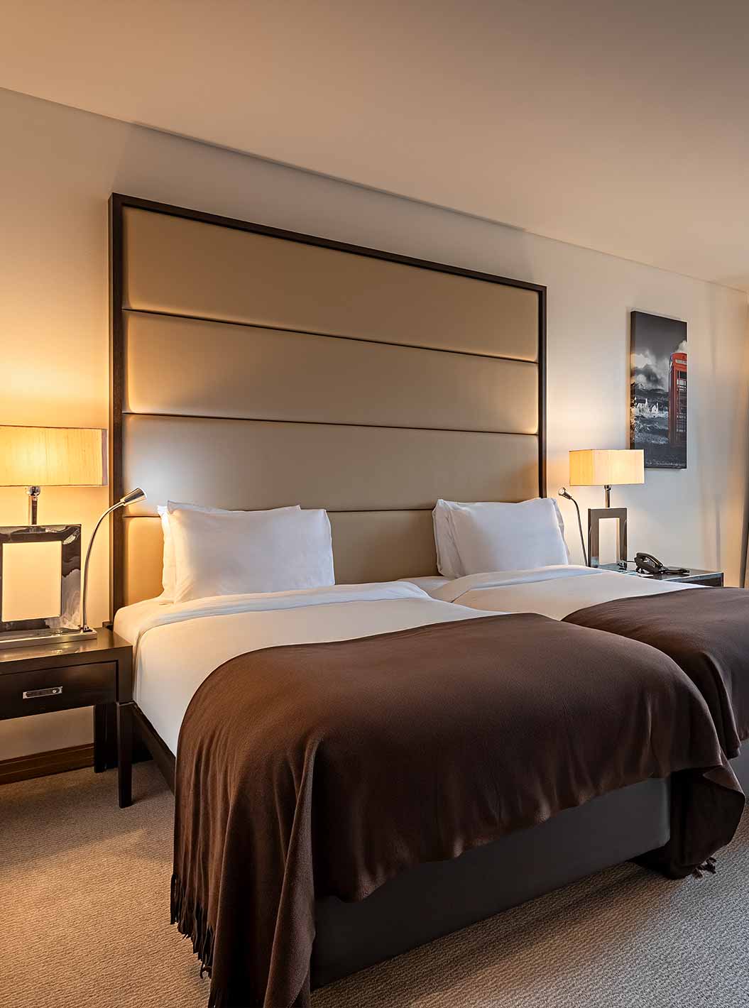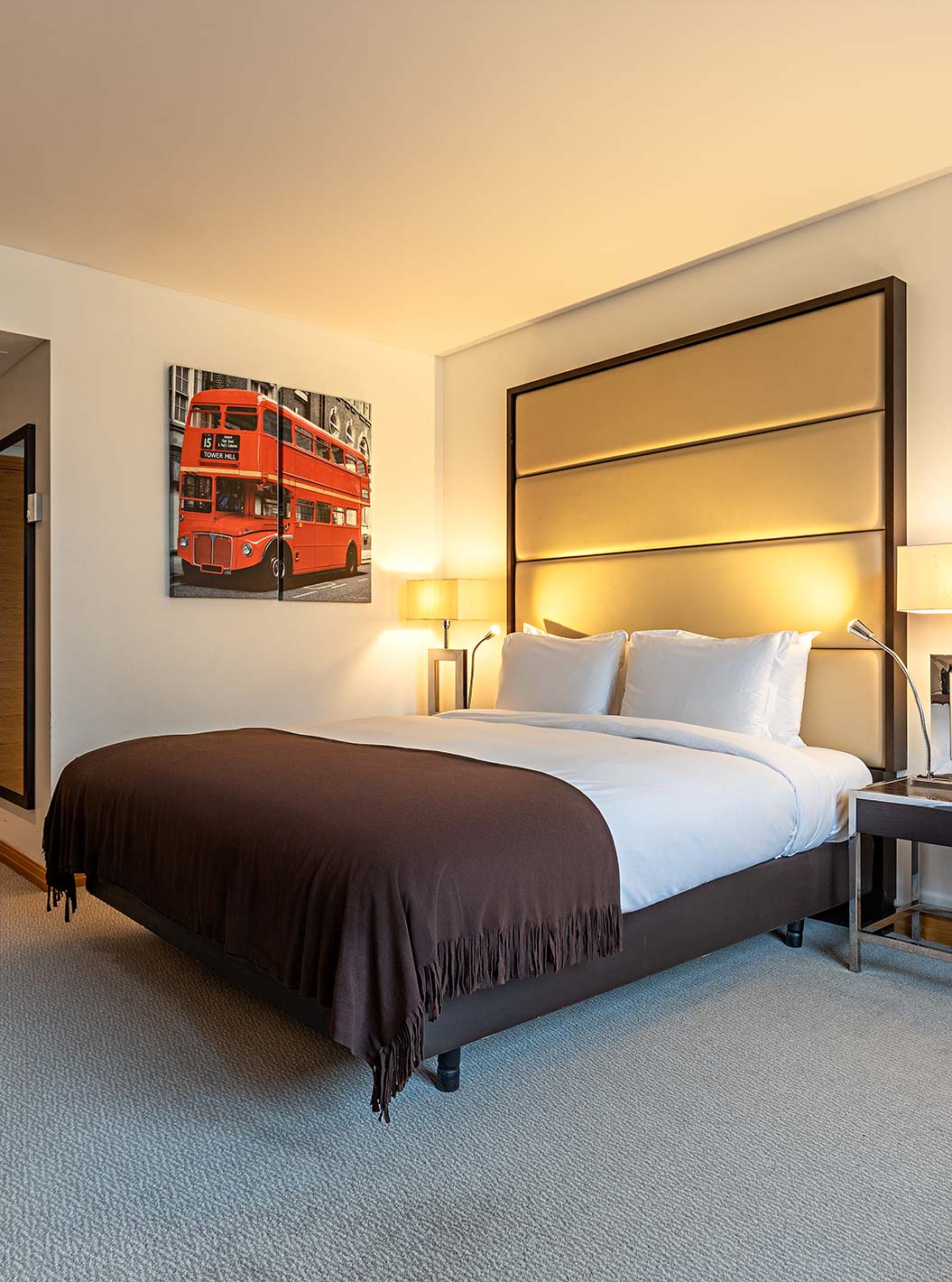 The hotel offers 217 spacious, modern rooms, including one- and two-bedroom suites, all equipped with both a bathtub and a separate shower. The comfort of its king-size and twin deluxe beds has become a hallmark, earning praise from leisure travellers and from national and international football teams who have made Pestana their London home.